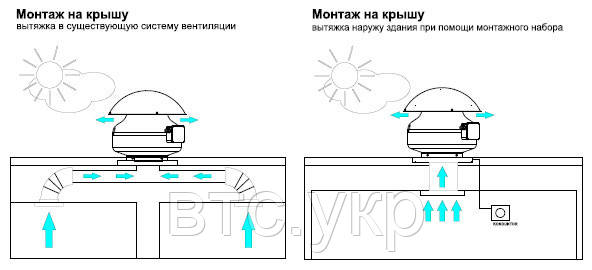 Дахні вентилятори встановлюються на дахах і можуть працювати як без мережі, так і з мережею повітроводів.
